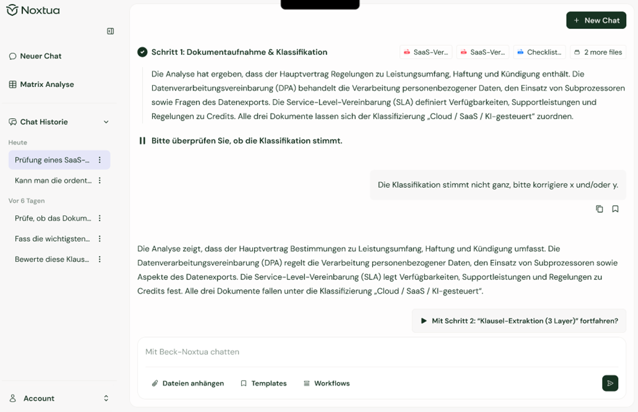 Die Integration von weiteren Partnerverlagen ist in Planung. Darüber hinaus greift MANZ-Noxtua auf öffentlich zugängliche Informationen zu, wie das RIS, die Findok, die EUR-Lex und parlamentarische Unterlagen. Durch die Integration der Inhalte mittels Retrieval-Augmented Generation (RAG) werden diese präzise in die KI-Abfragen von MANZ-Noxtua eingebunden.