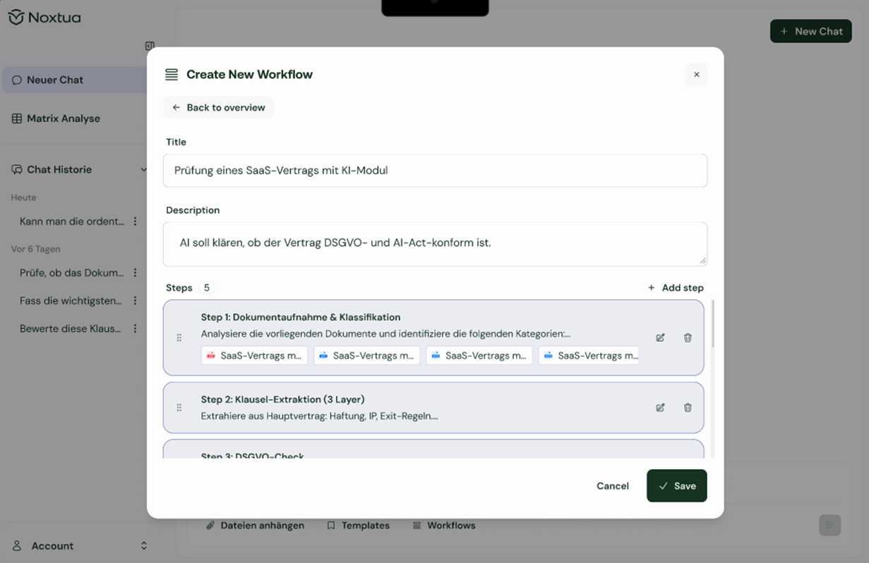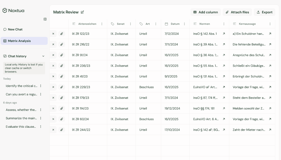 MANZ-Noxtua begleitet juristische Arbeitsprozesse durchgängig – vom ersten Rechercheimpuls über die Analyse bis hin zur strukturierten Texterstellung. Der Legal AI Workspace basiert österreichweit exklusiv auf dem Noxtua-Sprachmodell – einer eigens für juristische Anwendungsfälle trainierten KI.